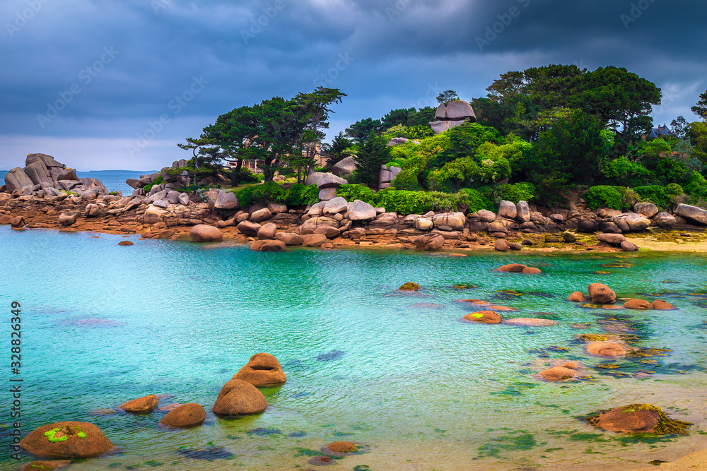 Picturesque Atlantic ocean coastline with turquoise bay, Perros-Guirec, France