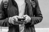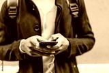Handsome African American man using mobile phone.