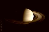 Saturn in unusual colors, on a dark background. Elements of this image were furnished by NASA.