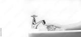 Woman washing hand with soap foam and tap water in bathroom. Hand clean under faucet on sink for personal hygiene to prevent flu and coronavirus. Good procedure of hand wash to kill bacteria, virus.