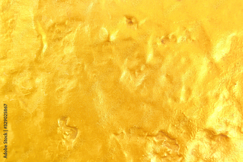 Gold yellow paint texture on concrete wall in rough patterns for colorful bright background
