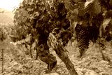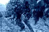 Parreira com cachos de uvas vermelhas em fazendas no Chile