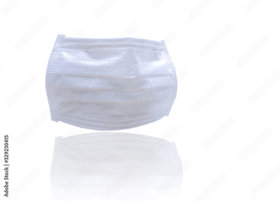 White surgical face mask or medical face mask for prevention coronavirus, flu, and air pollution. Disposable mouth mask with filter isolated on white background. Medical healthcare supply in hospital.