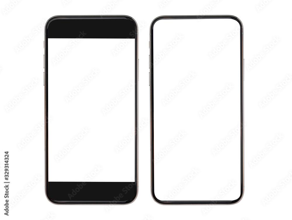 blank screen smartphone mockup isolated on white background.