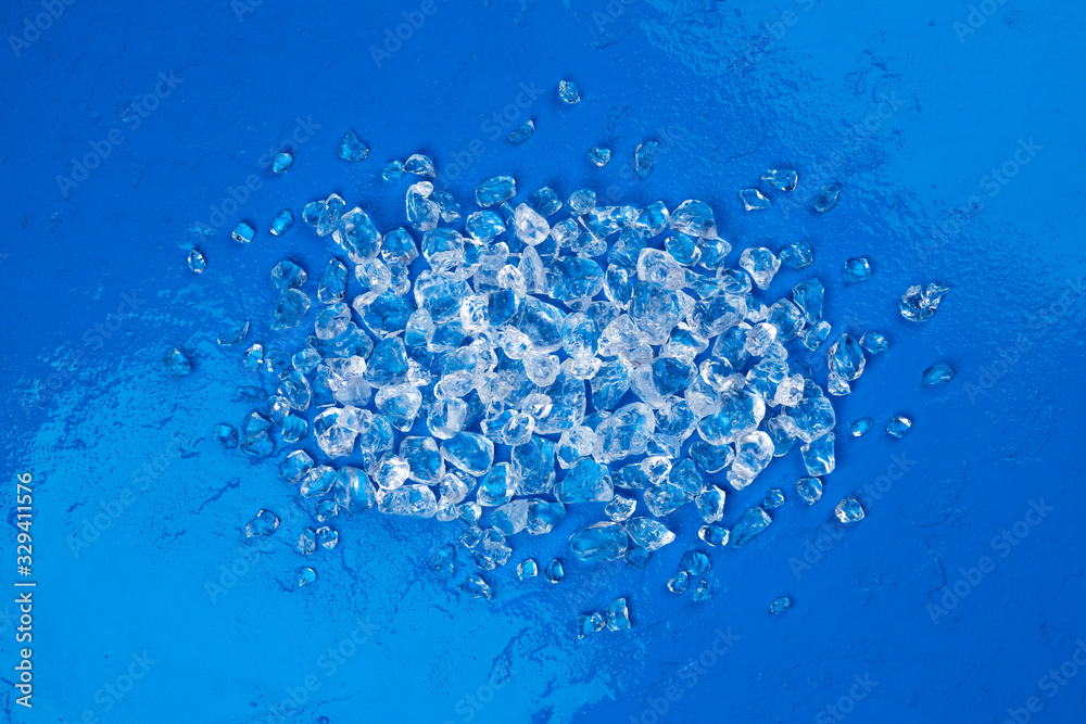 Pile of crushed ice on blue stone background