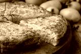 Spanish omelette with potatoes and onion, typical Spanish cuisine. Tortilla espanola. Rustic dark background