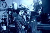 The Industry engineering wearing safety uniform control operating lathe grinding machine working in industry factory.