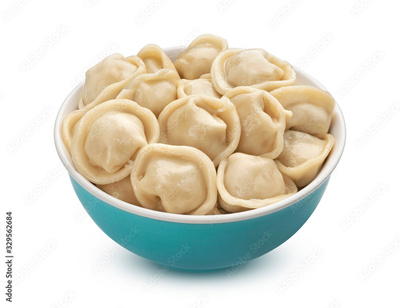 Meat dumplings, homemade russian pelmeni isolated on white background