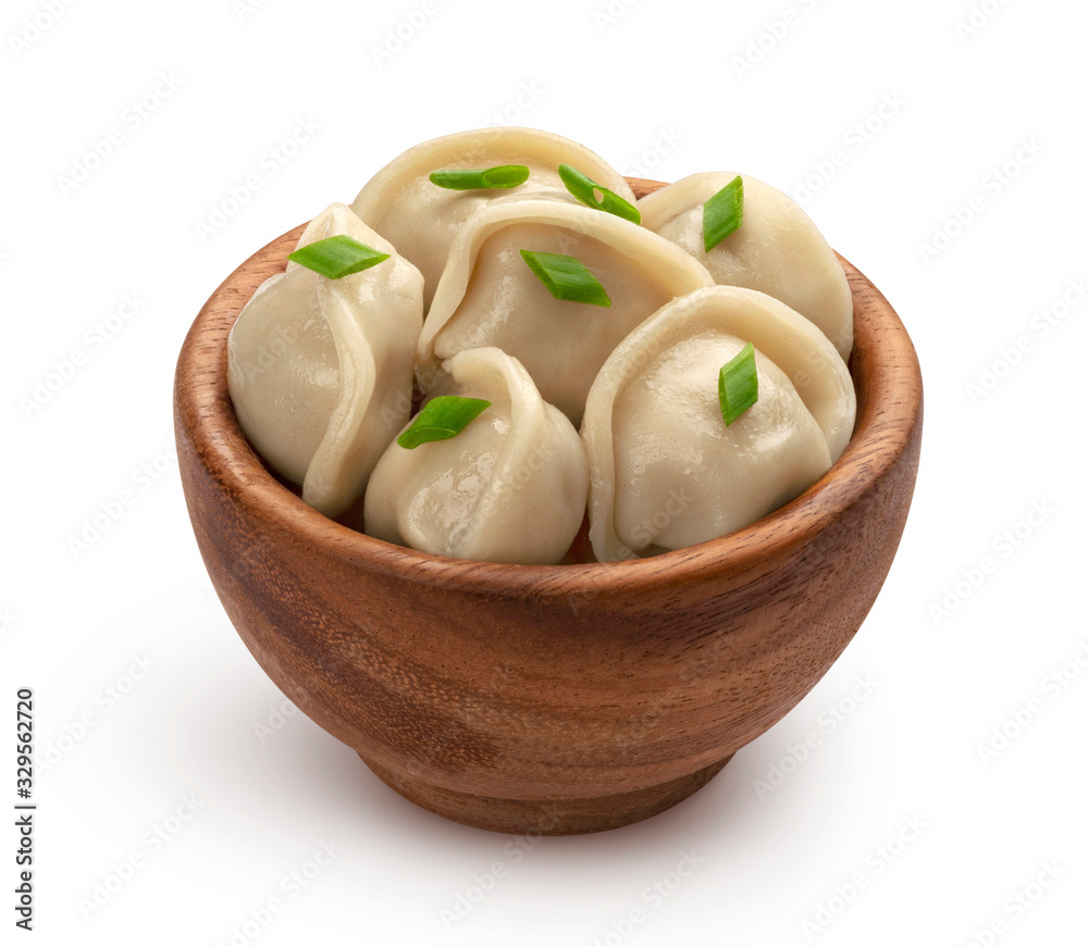 Meat dumplings, homemade russian pelmeni isolated on white background