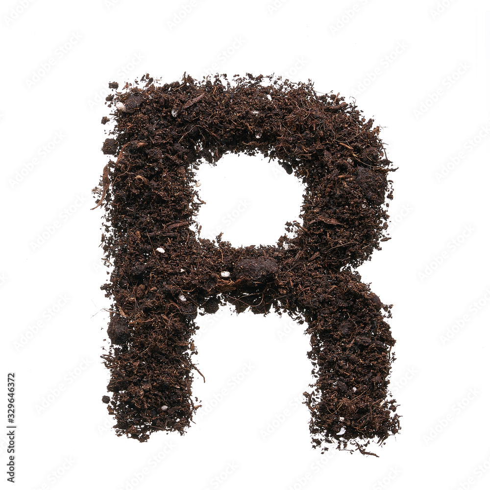 Letter of the English alphabet isolated on white background. Stencil letter is created using earth