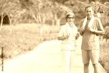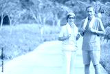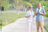 Asian senior retired couple jogging or exercise in the park. Healthy elderly people concept