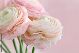 Beautiful bouquet of pink ranunculus. Buttercup flower petals close-up. Soft focus. Greeting card for Women's Day.