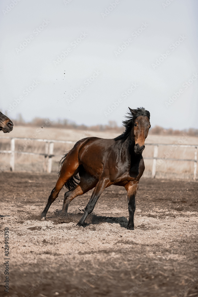 Herd of beautiful horses that ride in nature