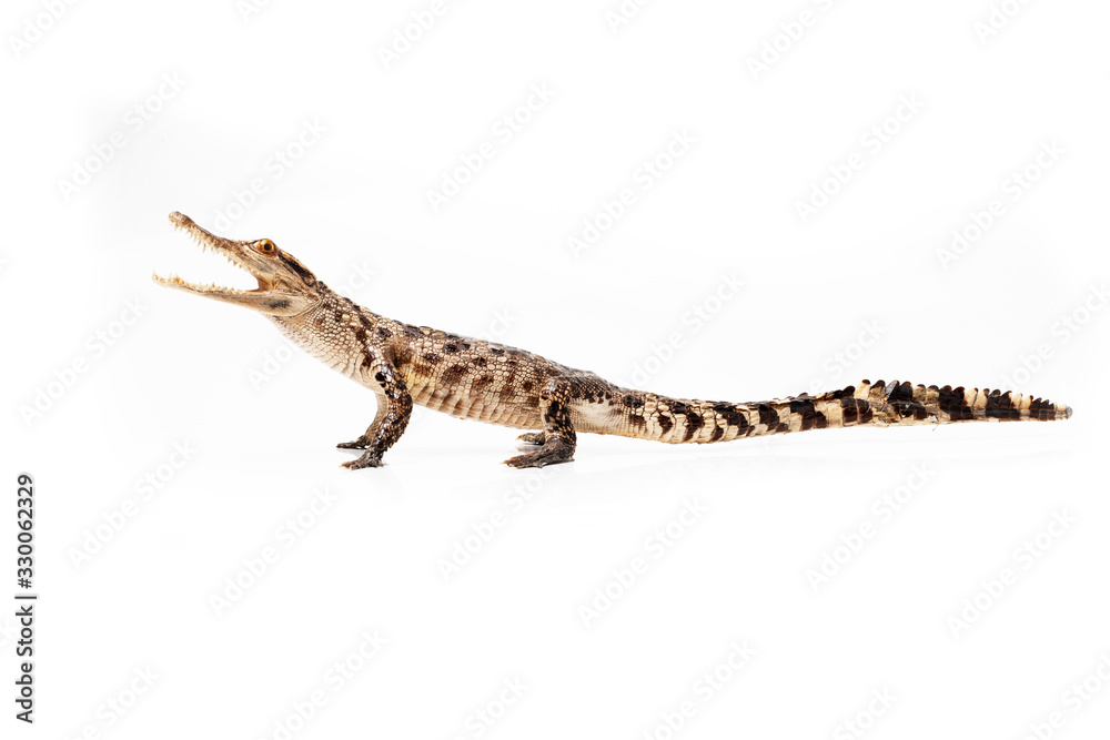 Side view.Mock up Baby crocodile isolated on white background Clipping path