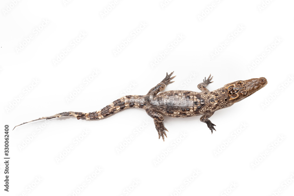 Top view.Mock up Baby crocodile isolated on white background Clipping path