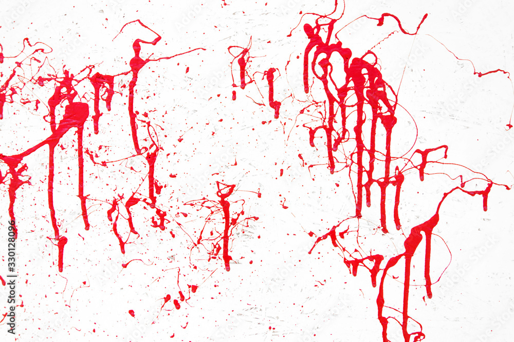 Bright red streaks of paint reminiscent of blood on a white surface. Abstract creative background.