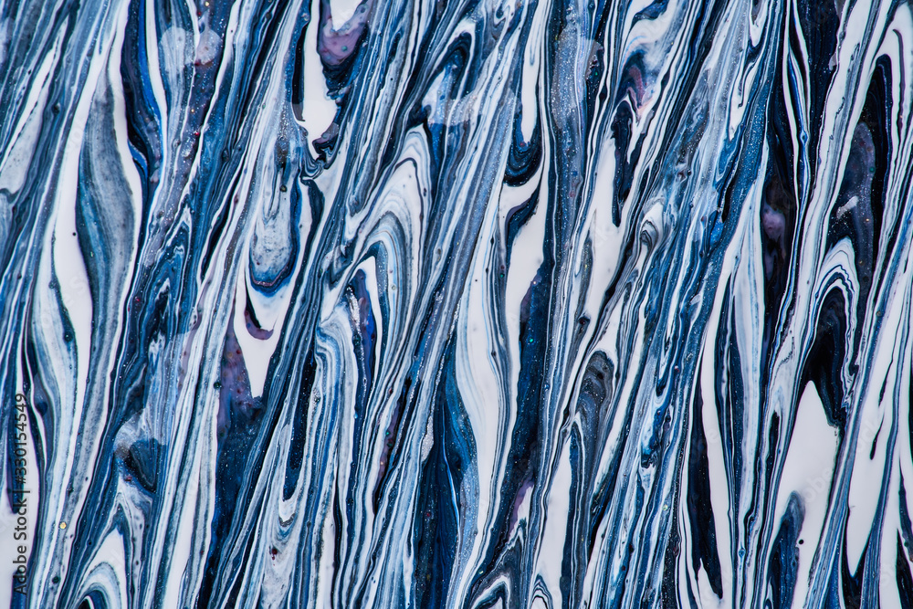 Texture and strokes of multicolored acrylic paint with sparkles on a white background