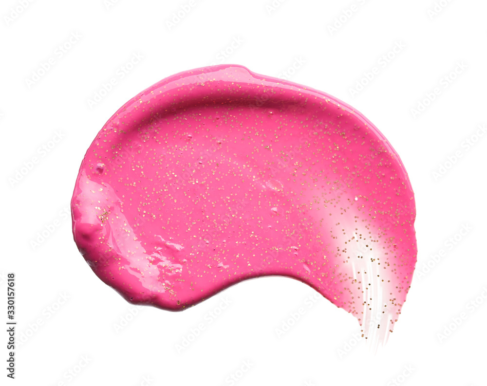 Gently pink strokes and texture of lip gloss or acrylic paint isolated on white background