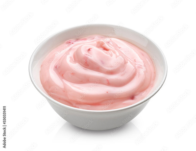 Strawberry yogurt isolated on white background