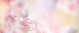 Spring or summer floral composition made of fresh hydrangea flowers on light pastel background. Festive flowers concept with copy space. Soft focus, macro photography.
