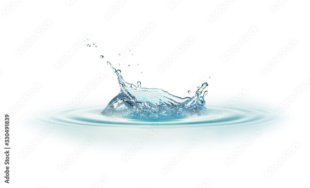 Blue water, water drop splash isolated on white background