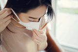 Male wearing protection face mask against coronavirus. Healthcare concept.