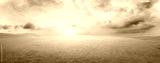 Green grass field and colorful sky clouds at sunset,panoramic view.