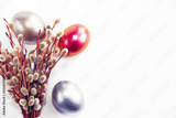 festive bouquet of willow branches and Easter multicolored shiny eggs