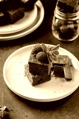 Pieces of a chocolate cake