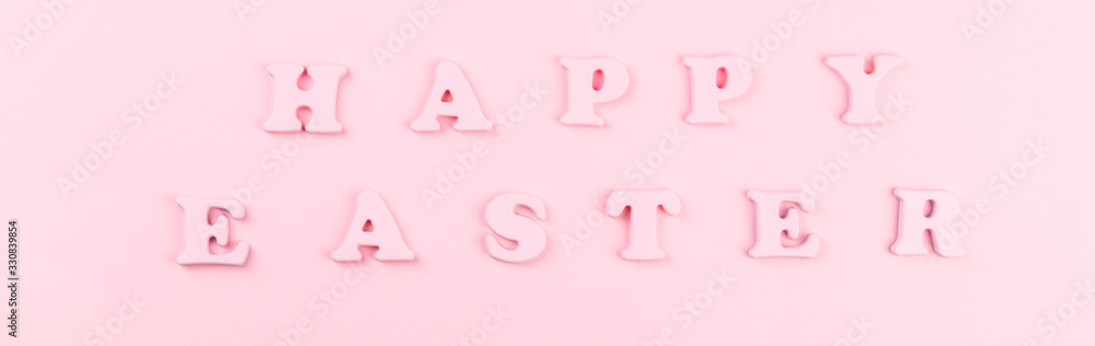 Happy Easter Greeting card with the inscription on a pink paper background.Concept of festive greeting