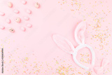Happy Easter Greeting card with the inscription on a pink paper background.Concept of festive greeting