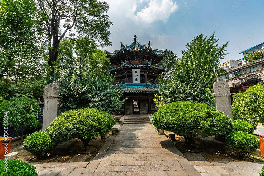 Main courtyard with gardens and small pagoda. Great Mosque of Xi'an at Xi'an old city, Shaanxi Province, China