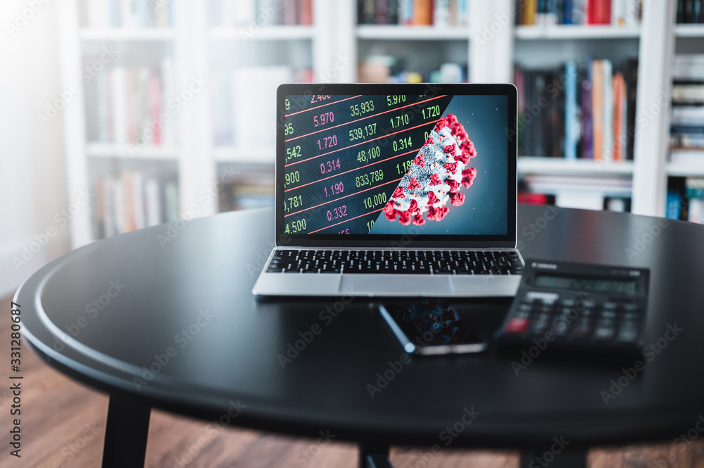 Global stock exchanges grow after coronavirus. The computer display shows the growth of the stock market after the global Coronavirus crisis. New 2019 COVID-19 theme.