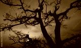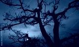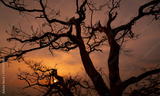 Beautiful silhouette leafless tree and sunset sky. Calm and peaceful scene of sun, and dark sky at sunset time with beauty pattern of branches. Fall season with tranquil nature. Beauty in nature.