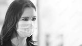 close up face woman wearing medical mask prevent infection virus in coronavirus covid 19 pandemic, copy space.