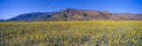 Panoramic view of Desert Lillies and Desert gold yellow flowers in spring fields of Death Valley National Park, California