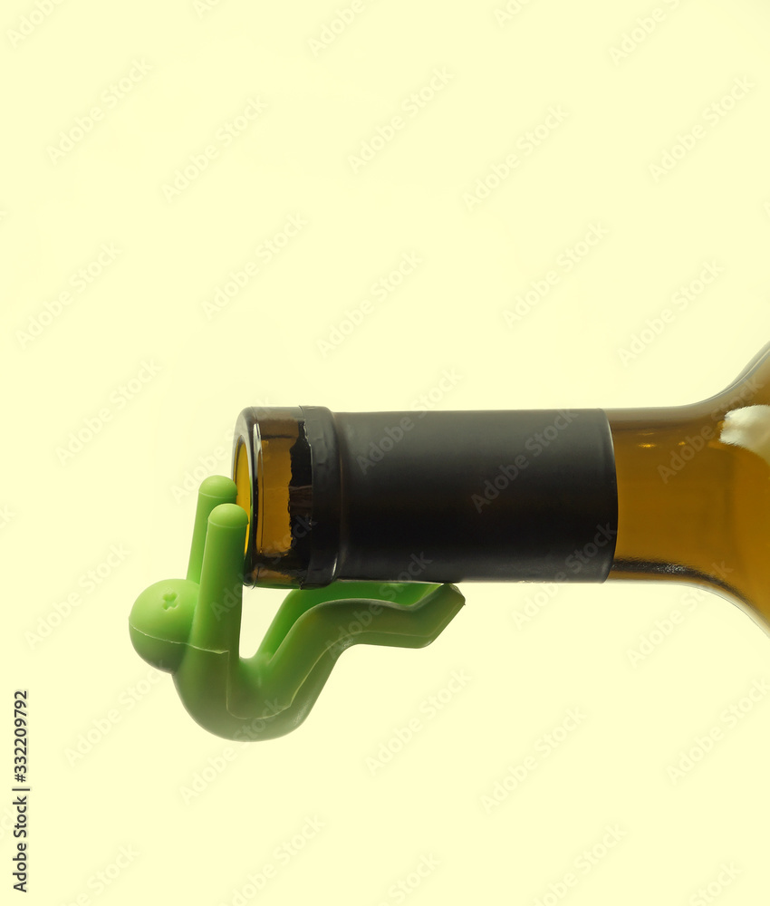 rubber man with a bottle of alcohol. booze and alcoholism concept