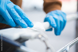 Disinfecting the handle of shopping basket. Coronavirus Epidemic Outbreak