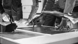 Engineer, Scientists and Developers Gathered Around Illuminated Conference Table in Technology Research Center, Talking, Finding Solution and Analysing Industrial Engine Design. Close-up Hands Shot