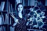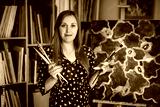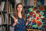 studio portrait of a painter with a brush