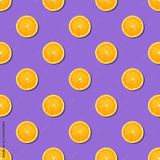 Orange slices seamless pattern on purple background. Minimal flat lay top view food texture