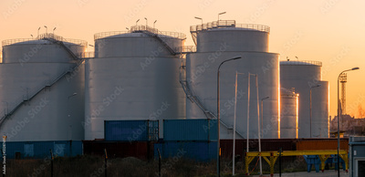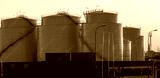 fuel storage tanks in a seaport