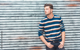 Fshionable young man posing on against wall
