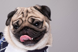 Cute dog pug breed standing and making funny or serious face feeling happiness and cheerful,ฺBeautiful Purebred dog and healthy dog,Isolated on white background,Dog friendly Concept