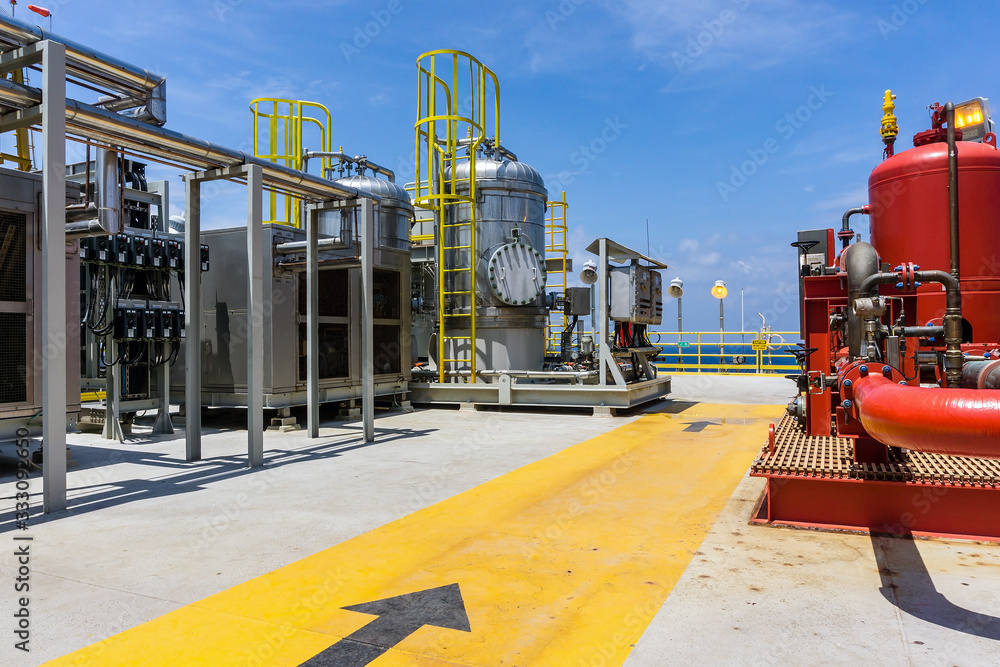Cooler units and condensation vessels at process area on a production platform