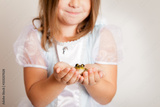 Happy Princess Girl Holding a Frog, Fairy Tale Magic