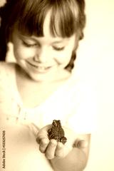 Happy Princess Girl Holding a Toad, Fairy Tale Magic