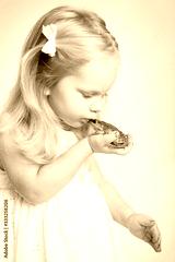 Little Princess Girl Kissing a Frog, Fairy Tale Magic