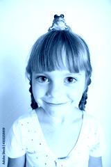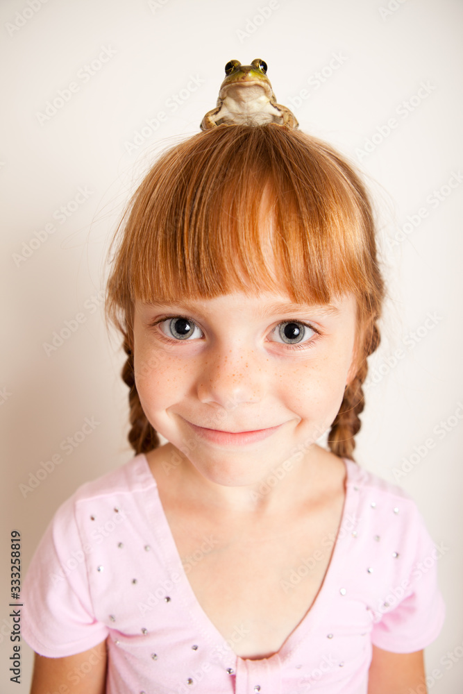 Happy Princess Girl with a Frog on Her Head, Fairy Tale Magic