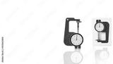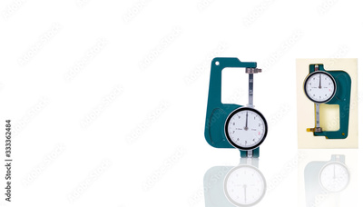 Green thickness gauge isolated on white background. Snap vernier calipers. Measurering tools. Measurement equipment. Measurement of thickness, outer diameter, inner diameter and depth. Handy size.